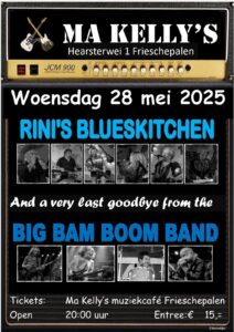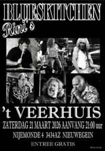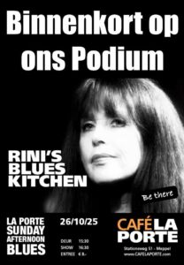 Rini’s Blues Kitchen brengt een heerlijk portie blues, overgoten met rock en soul, nummers van onder meer Susan Tedeschi, Beth Hart, Stevie Ray Vaughn, Janiva Magness, Koko Taylor, Etta James, Joe Bonamassa, etc. Herkenbaar maar op geheel eigen, muzikale wijze gebracht!